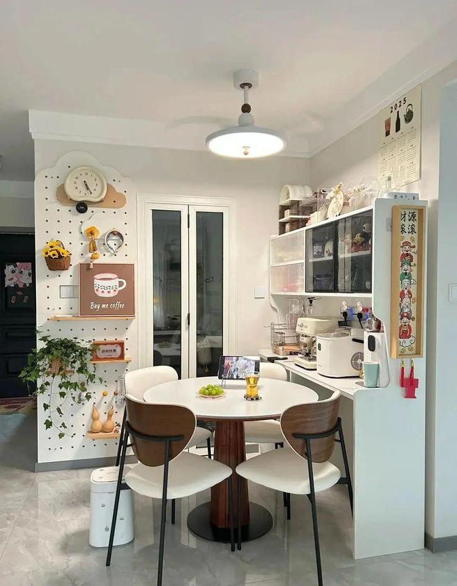 网友@吃货Lily:我家是开放式厨房+餐厅,选了张圆桌,氛围感一下子好了不少,吃饭都香了!