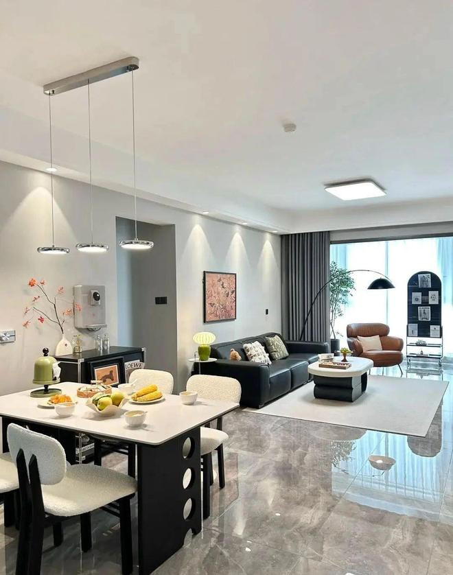 网友@设计控Ray:我家是横厅,餐桌放在沙发后面,不设隔断,视野开阔,朋友来了都夸很显大!