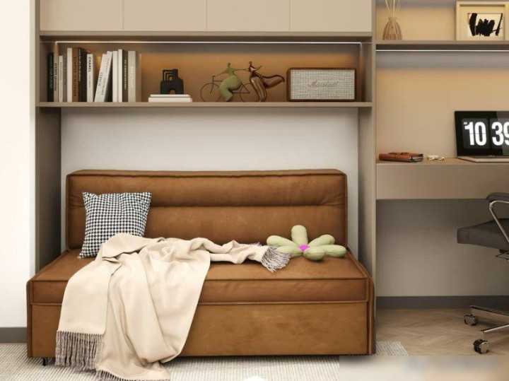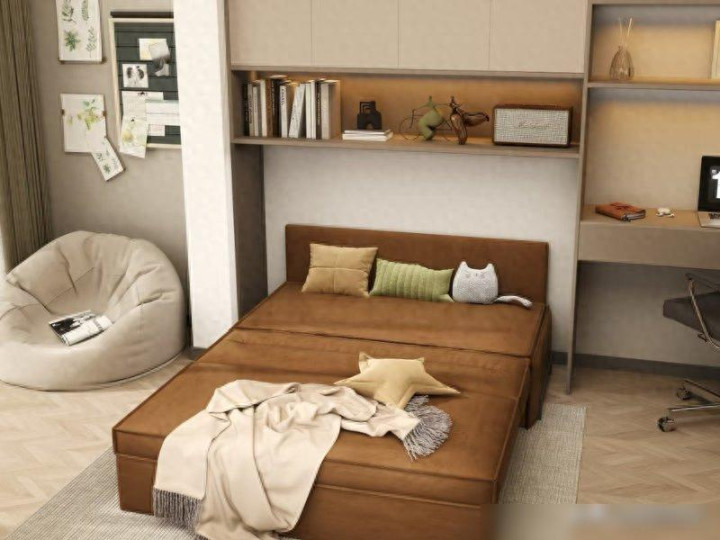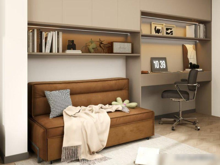 要是小卧室平时没人住,装沙发床简直是“神仙操作”!我闺蜜家的小卧室就是这么弄的:平时折叠起来是个软乎乎的沙发,摆张原木书桌、放把藤椅,就是个超舒服的书房——她周末总在这儿喝着咖啡写方案,比窝在客厅被电视吵着强多了。上次她爸妈来住,直接把沙发床展开,铺层褥子就是床,连收拾都不用费劲,这不就是“一间房当两间用”?关键是空间透气又宽敞,比榻榻米那种“填满整个房间”的设计让人舒服多了。