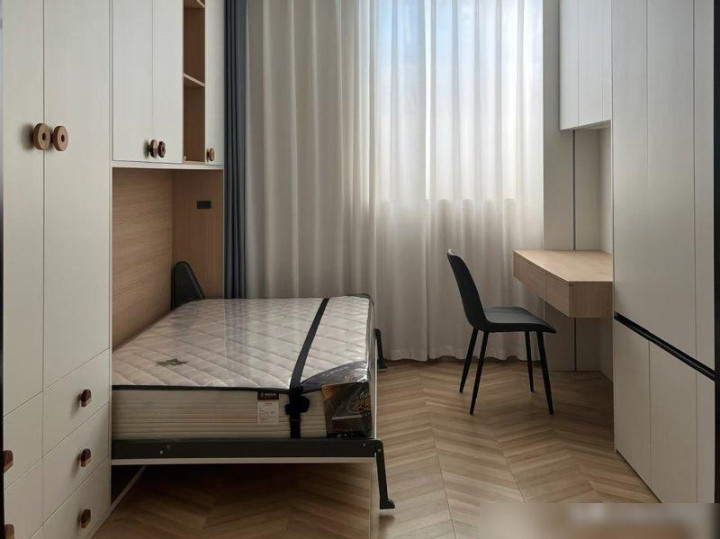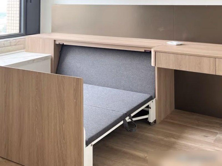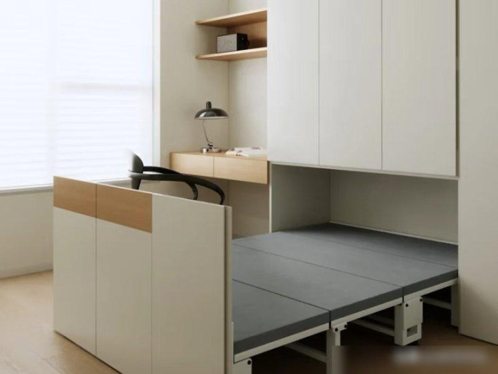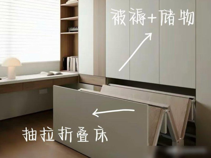我姐家的小卧室就装了这个,平时是她的“衣服天堂”,放满了裙子和包包,姐夫偶尔在这儿加班写报告,朋友来住的时候拉下来就是床,连被褥都不用专门存,是不是比榻榻米那种“占着空间不用”的设计强多了?